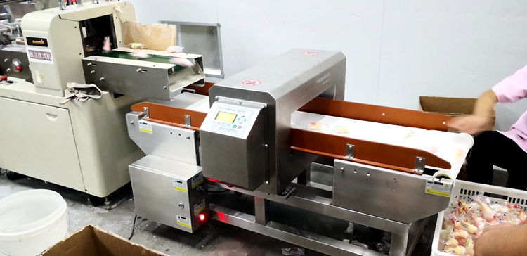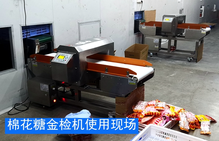 棉花糖金屬探測機使用現場,東莞某好食品是一家品牌棉花糖及雪糕杯食品生產企業,擁有自有品牌2個,使用連之新食品金屬檢測機金檢機五臺,以下為棉花糖和雪糕杯使用連之新金檢機的現場!
