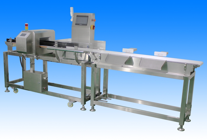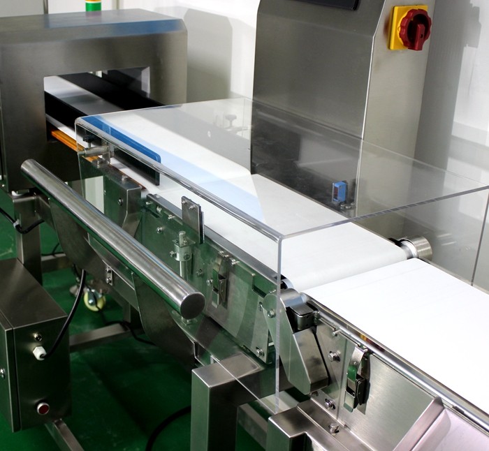 金屬檢測和重量檢測一體機,主要用于小包裝干貨等按重量大小分選規格或等級,適用于企業流水線產品生產動態稱重、產品品質重量檢測及金屬異物檢測,專用于產品整箱缺件、附件缺失以及金屬殘留金屬異物檢查等等,配備自動剔除不合格處理分選設備,前段為金屬超標剔除,后段剔除為重量檢測不合格剔除。