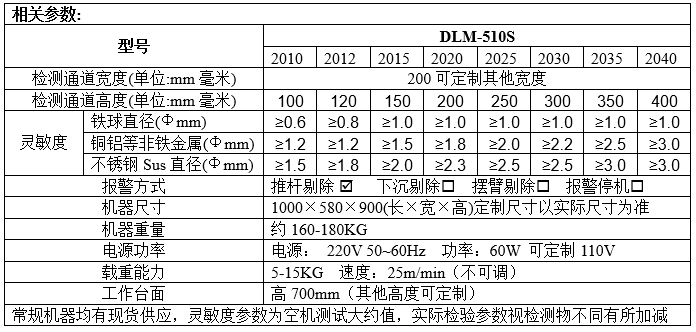 產(chǎn)品名稱:DLM-510S觸屏式全金屬檢測機200系列一款數(shù)字式金屬檢測機,用于檢測非金屬材質(zhì)瓶裝產(chǎn)品中常見的金屬異物,采用歐美及食品標準設(shè)計,整機設(shè)計符合食品機械要求,適合連接流水線檢測作業(yè)。